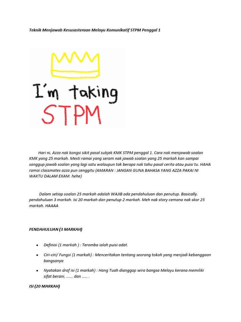 Teknik Menjawab Kesusasteraan Melayu Komunikatif Stpm Penggal 1 Pdf